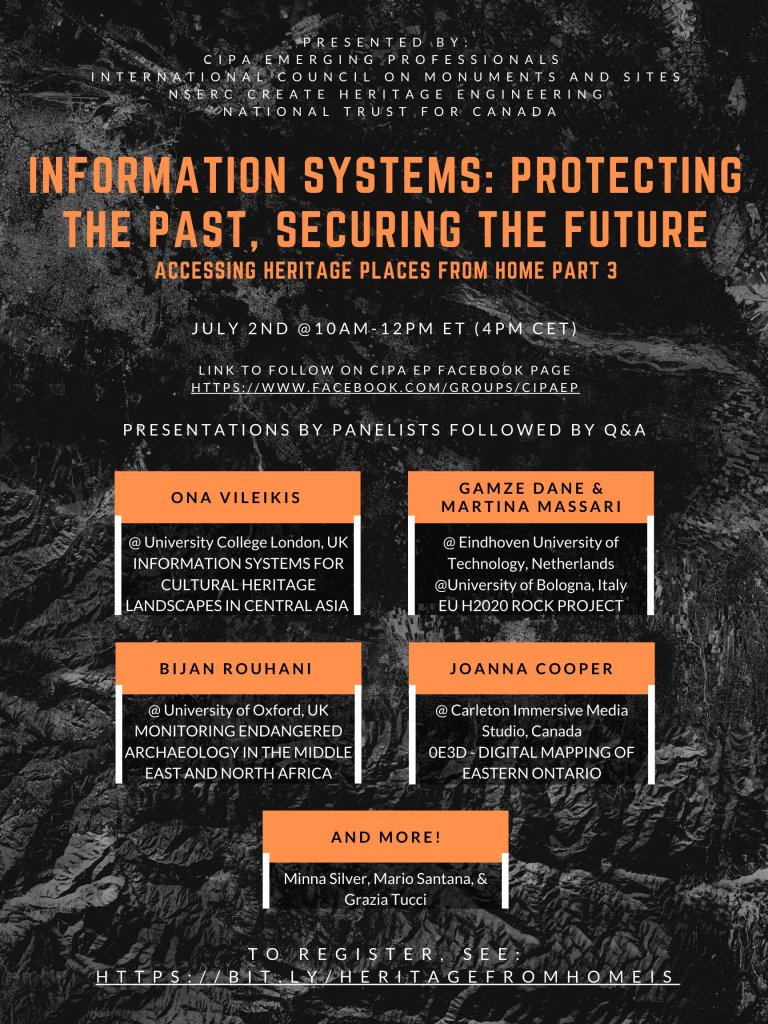 On July 2, 2020, Gamze has joined the webinar “Information Systems: Protecting the past, securing the future” that was organized by ICOMOS and National Trust for Canada. Gamze, together with Martina Massari from the University of Bologna, has talked about the European H2020 ROCK Project and the role of information systems for the regeneration of heritage districts. The webinar guested around 100 interested people from around the world.